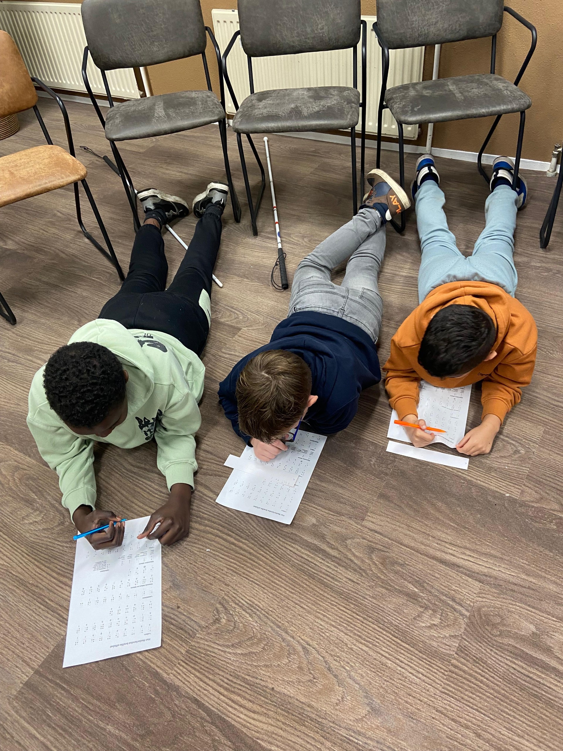 Na de lunch heeft Ellen veel over haar blindzijn verteld. Ze had allerlei materialen mee zodat wij een beetje konden ervaren hoe het is om slechtziend of blind te zijn. Bijvoorbeeld door te lopen met verschillende stokken terwijl we een blinddoek op hadden, brailleschrift te ontcijferen en te kijken en te luisteren naar mogelijkheden op de telefoon van Ellen waarbij gebruik wordt gemaakt van Artificial intelligence (AI). En natuurlijk heeft ze verteld en laten zien wat haar geleidehond voor haar kan betekenen. We weten nu ook dat een blinde een extra goed gehoor ontwikkeld en dat het voor Ellen prettig was dat we ons volume wat aan pasten.